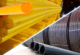 Ductos para protección de cables de fibra óptica, tendido eléctrico subterráneo y piezas de protección para cable tensor de poste eléctrico. Fabricados con polietileno 100% virgen, protegido contra los rayos UV.