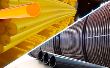 Ductos para protección de cables de fibra óptica, tendido eléctrico subterráneo y piezas de protección para cable tensor de poste eléctrico. Fabricados con polietileno 100% virgen, protegido contra los rayos UV.